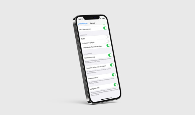 Möchtest du diesen Effekt jedoch erreichen, kannst du die Korrektur auch deaktivieren. Öffne dazu die Einstellungen-App und rufe den Eintrag „Kamera“ auf. Scrolle nach unten und ziehe den Regler neben „Objektivkorrektur“ nach links. Dies deaktiviert den Ausgleich für die Verzerrung. Vergiss die Funktion hinterher nicht wieder zu aktivieren, da ansonsten zusätzliche Software nötig wird.