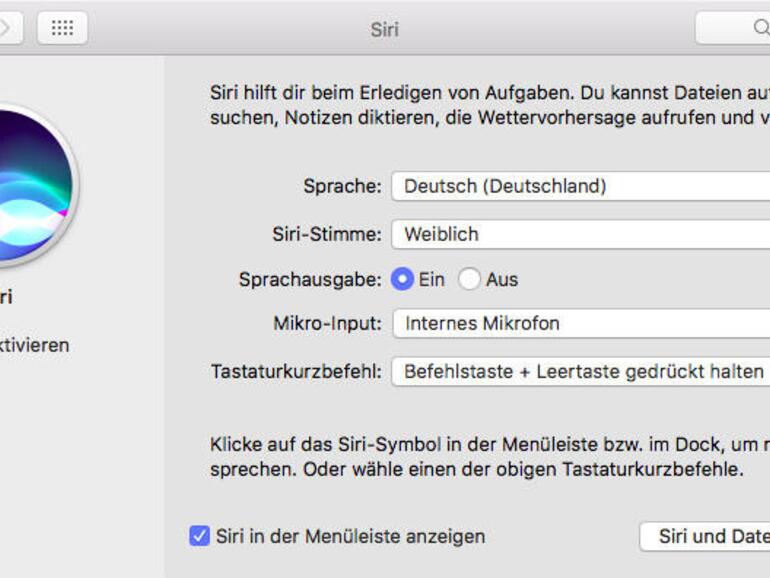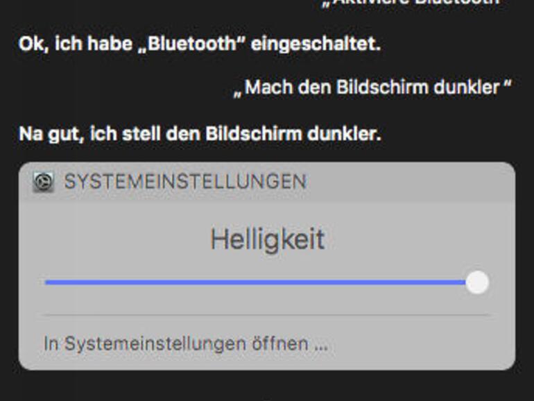 Siri kann vielerlei Systemeinstellungen verändern und abfragen und beispielsweise auf die Schnelle die Lautstärke verstellen oder Bluetooth aktivieren. Wie so oft ist Siris Verständnis allerdings ziemlich begrenzt: So gelingt weder die Abfrage des aktuellen WLANs noch die Änderung der Freigabeeinstellungen. Auf manche Begriffe reagiert Siri auch ein wenig wie auf ein rotes Tuch. Bauen Sie beispielsweise das Wort „Ruhezustand“ in einen Satz ein, bettet sich Ihr Mac zur Ruhe, bevor Sie etwas dagegen tun können. Erwarten Sie also nicht zuviel von der Spracherkennung.