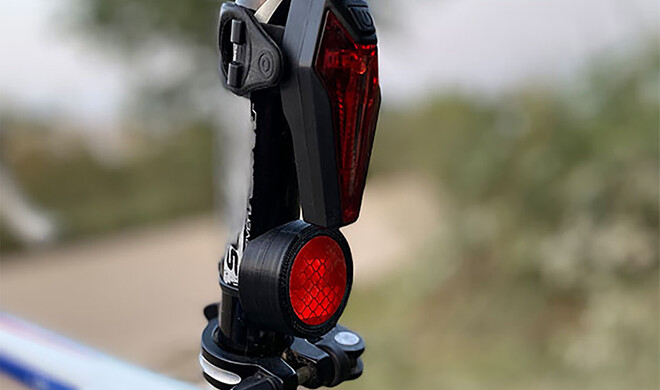 Die letzte Halterung von Gadget-Gott versteckt den AirTag in einem Reflektor, der einfach per Kabelbinder an der Sattelstange angebracht wird. Die abgerundete Aufnahme ist in einem für Sattelstützen üblichen Winkel von 15 Grad angeschrägt, damit der Reflektor gerade nach hinten reflektiert. Haben wir erwähnt, dass du alle Produkte von Gadget-Gott aus als digitale STL-Datei zum Selberdrucken erwerben kannst? Kostenpunkt: faire 2,50 Euro.