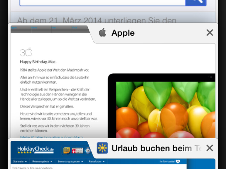 Dazu müssen Sie sich im Browser nur mit Ihren Google-Kontodaten anmelden. Die Eingabe ins Adressfeld hat eine praktische Auto-Vervollständigung und bietet eine Suche nach passenden Web-Adressen (URLs). Im Inkognito-Modus surfen Sie, ohne Spuren in der Browser-Historie zu hinterlassen. Der Browser kommt auch mit einer Vielzahl geöffneter Tabs gut klar. Im Test bemerkte ich auch bei 35 offenen Seiten noch keine Geschwindigkeitseinbuße. Der Wechsel zwischen den Tabs erfolgt über eine vertikale Wischbewegung.