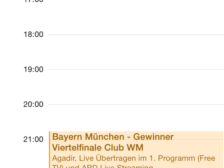 Die Bundesliga-Termine bzw. die Spieltermine der Lieblingsmannschaft finden Sie unter www.fussball-spielplan.de. Termine in der Vergangenheit sind sogar mit dem Spielergebnis versehen. Die Ferientermine für die 16 Bundesländer finden Sie unter www.schulferien.org/ iCal. Weitere Kalenderabos zu nationalen Feiertagen, Mondphasen und Geschichtsdaten finden Sie unter www.icalshare.com und www.apple.com/downloads/macosx/calendars. Das Stöbern lohnt sich!