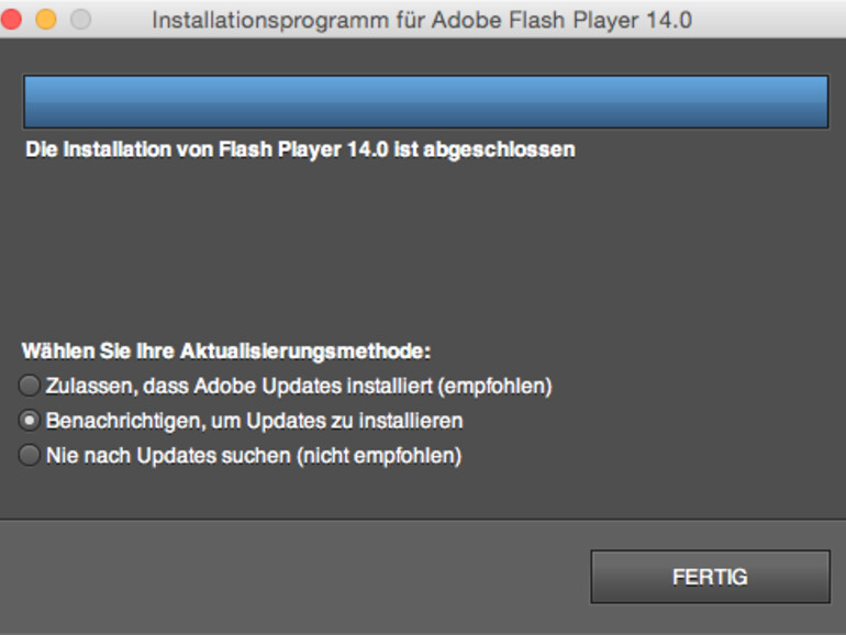 Zum Abschluss müssen Sie noch erlauben, dass der Player nach Aktualisierungen sucht oder diese automatisch installiert.