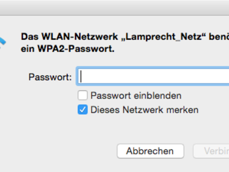 3 Das Netzwerk wird wahrscheinlich mit einem Zugangsschlüssel gesichert sein. Geben Sie im nachfolgenden Dialog also den notwendigen Schlüssel ein. Klicken Sie anschließend auf Verbinden.