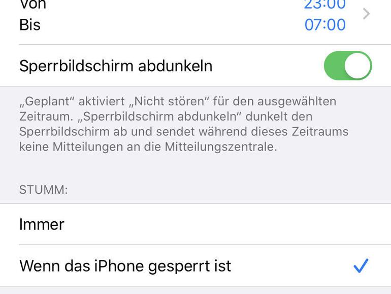 „Nicht stören“ aktivieren Sie im Kontrollzentrum oder in dessen Einstellungen. Dort können Sie auch einen Zeitplan vorgeben. Bei dunklem Sperrbildschirm zeigt die Zentrale keine neuen Mitteilungen.