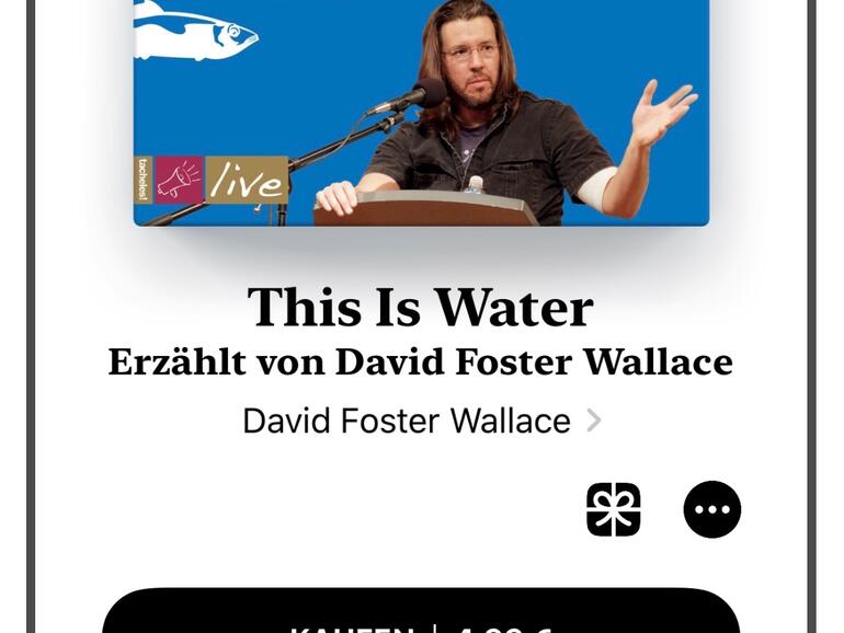 Ich habe versucht das Hörbuch „This Is Water“ von David Foster Wallace zu erstehen. Sucht man danach in der „Bücher“-App, bekommt man im wesentlichen drei Versionen vorgeschlagen:
