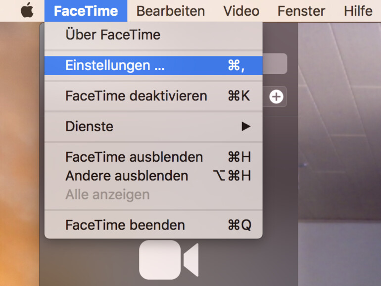Schritt 2: Klicke in der Menüleiste am oberen Bildschirmrand auf „FaceTime" und wähle den Punkt „Einstellungen" aus.