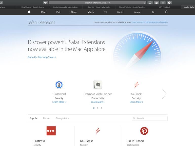 Neue Erweiterungen für Safari finden Sie direkt bei Apple unter safari-extensions.apple.com oder im App Store.