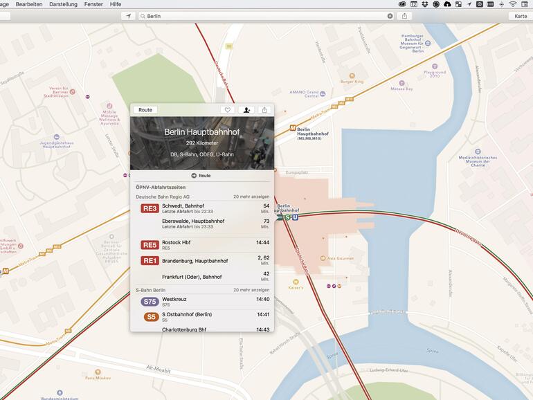 Google Transit ermöglicht es, eine Reise mithilfe von öffentlichen Verkehrsmitteln zu planen (http://bit.ly/AppleMapsTransit).