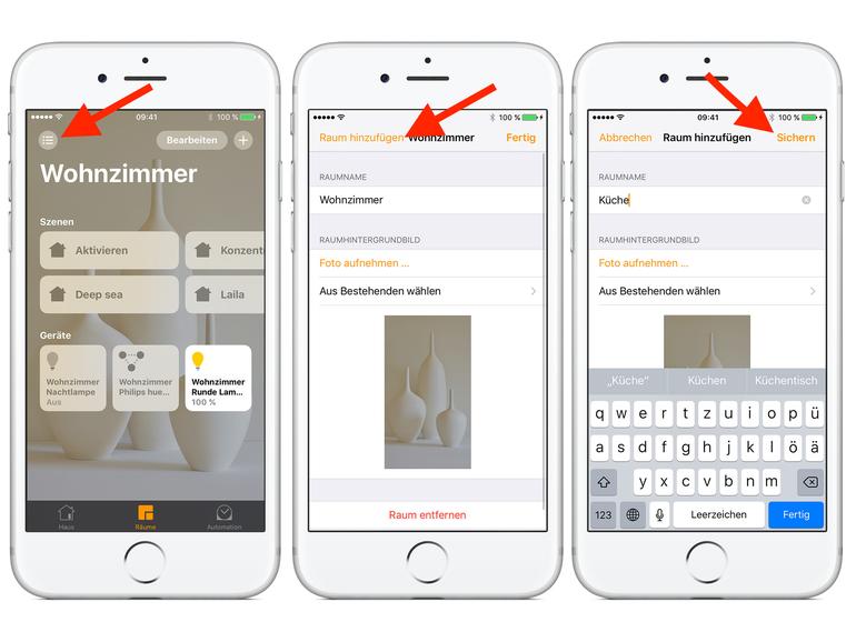 Um die Übersicht über die Geräte zu behalten, kann man diese Räumen zuordnen. Doch dafür muss man diese erst erstellen.