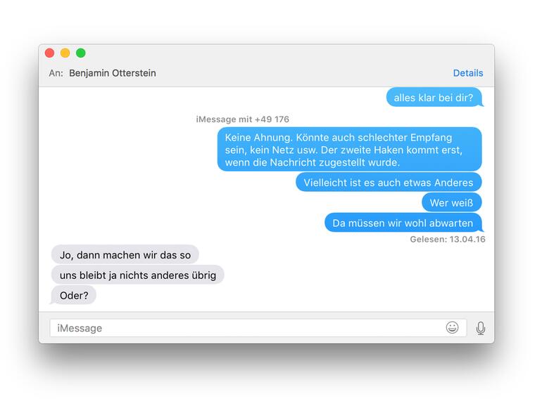 Der Trick, um den iMessage Zeitstempel am Mac einzublenden, ist eigentlich ziemlich simpe, wenn man weiß, wie es funktioniert. Sie fahren nur mit dem Mauszeiger über die Nachricht und nach kurzer Zeit wird die exakte Uhrzeit angezeigt, aber jetzt nochmal ganz langsam: