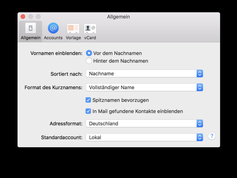 Schritt 3: Im Reiter „Allgemein“ können Sie nun entscheiden, ob der Vorname hinter oder vor dem Nachnamen angezeigt werden soll. Je nach Auswahl ist auch sinnvoll die Sortierung über das darunter liegende Dropdown-Menü anzupassen.