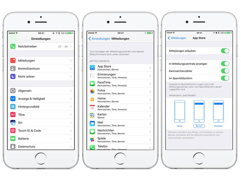 Im jeweiligen Untermenü können Sie anschließend entscheiden, ob Sie Mitteilungen von der App erhalten möchten und diese in der Mitteilungszentrale angezeigt werden soll. Darüber hinaus können Sie auch einstellen, ob ein Ton ausgegeben werden sollen und ob die Mitteilung auch auf dem Sperrbildschirm erscheinen soll.