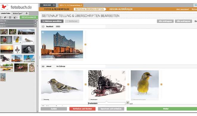 Am schnellsten zum Ziel kommen Sie mit dem Assistenten, der Sie Schritt für Schritt durch den Aufbau des Kalenders führt. Sie legen lediglich fest, welche Fotos und Texte auf welches Blatt sollen – der Assistent erledigt den Rest für Sie. Selbstverständlich können Sie auch später noch Änderungen vornehmen.