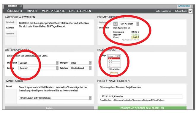 Ein selbst gestalteter Fotokalender ist das perfekte Geschenk zu Weihnachten – und mit DESIGNER 3 von fotobuch.de erstellen Sie einen individuellen und hochwertigen Kalender mit Ihren Fotos in wenigen Minuten. Alles, was Sie brauchen, sind mindestens 13 Fotos (für zwölf Monatsblätter plus ein Deckblatt). Der intelligente Assistent der Software DESIGNER 3 hilft Ihnen, die Fotos zu ordnen, auf Wunsch mit Texten zu versehen und auf die Blätter zu verteilen. Nach einem weiteren Klick ist Ihr Kalender schon bestellfertig!