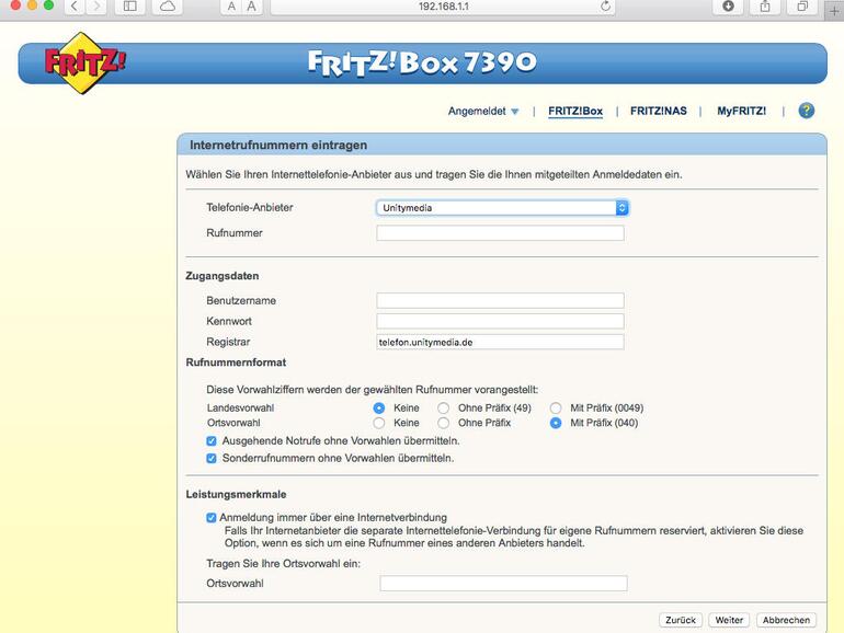 Wer einen freien Anbieter wie etwa Sipgate nutzt, kann auch dessen Daten eingeben. Im Bereich Telefonie lassen sich dann Telefone an den Anschlüssen der Box, schnurlose Telefone und auch Geräte wie iPhones mit passender App, die per WLAN angemeldet sind, verwalten. So kann man festlegen, welches Gerät bei welcher Nummer klingelt und vieles mehr. Mit Telefonzentrale ausgestattete Fritzbox-Modelle bieten auch Anrufbeantworter sowie Faxempfang und schicken Nachrichten per Mail an den Besitzer.
