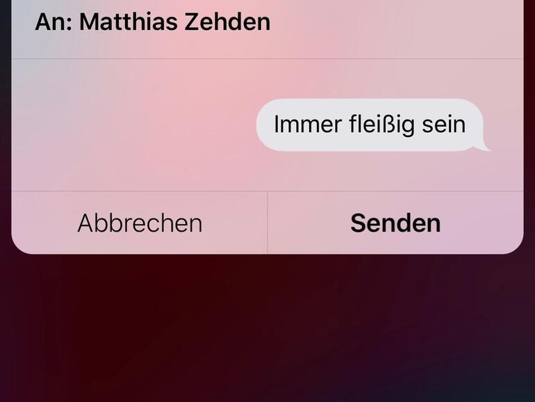 Der Weg über die Einstellungen „Siri & Suchen“ ist im Zweifel der einfachere, aber auch weniger flexible Weg. Unter den vorgeschlagenen Kurzbefehlen findet man alle möglichen Vorschläge von Apps, die das Verfahren unterstützen. Konkret finden sich hier, sortiert nach Apps, vor allem kürzlich ausgeführte Aktionen. Schreibt man beispielsweise eine Nachricht, schlägt Siri sehr wahrscheinlich vor, dass man dieser Nachricht für die Zukunft einen Kurzbefehl gibt – was ja durchaus sinnvoll sein kann, wenn man öfter Nachrichten wie „fahre jetzt los“ an immer die gleichen Empfänger schickt.