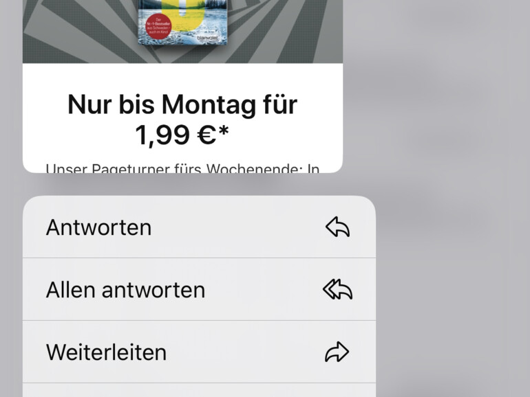 In iOS 13 können Sie nicht nur Konversationen in Ihren Nachrichten stummschalten, sodass Sie keine Benachrichtigungen mehr dazu bekommen, sondern auch Ihre E-Mails. Öffnen Sie dazu die Mail-App und halten Sie einen Finger kurz auf eine E-Mail, um die neue Ansicht zu öffnen. Ziehen Sie den Finger nach oben, um„Stumm“ anzuzeigen. Tippen Sie darauf – künftig erhalten Sie keine Benachrichtigungen mehr. Einen Nachteil hat die Funktion aktuell noch. Es besteht keine Möglichkeit, dass Sie die Konversation nur temporär, beispielsweise für ein paar Stunden, stummschalten.