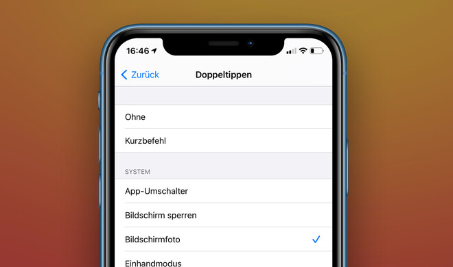 In den Einstellungen unter „Bedienungshilfen > Tippen“ findest du ganz unten den Eintrag „Auf Rückseite tippen“. Hier kannst du für zweifaches und dreifaches Tippen auf die Rückseite deines iPhone Systembefehle wie „Lauter“ oder „Bildschirmfoto“ hinterlegen. Auch eigene Kurzfehle kannst du mit diesem Shortcut starten, wodurch dir quasi keine Grenzen gesetzt sind. Bedenke jedoch, dass die Funktionsweise durch eine Hülle beeinträchtigt werden kann.