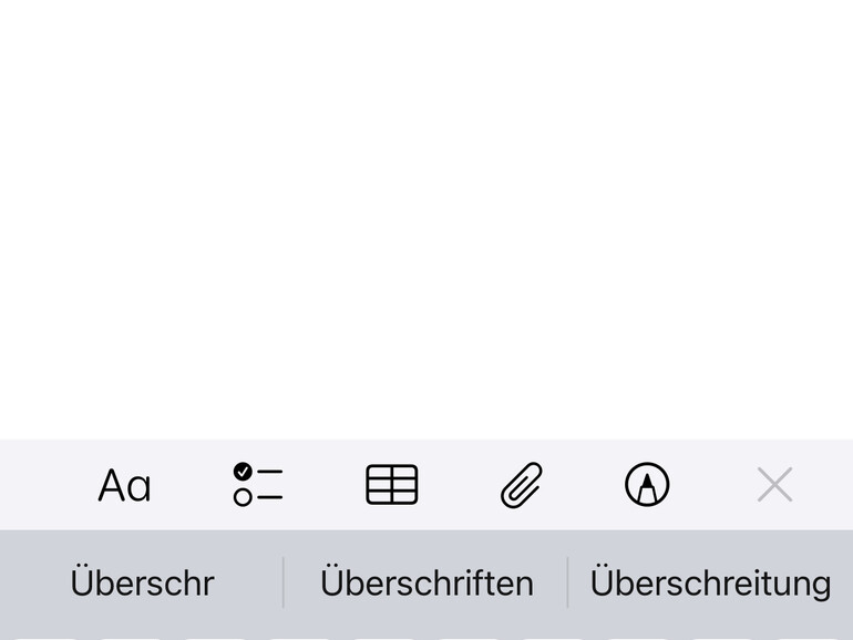 Zum Hervorheben markierst du den gewünschten Bereich in deinem Text. Rufe dann unten in der Befehlsleiste mit der Taste „Aa“ das Formatmenü auf.