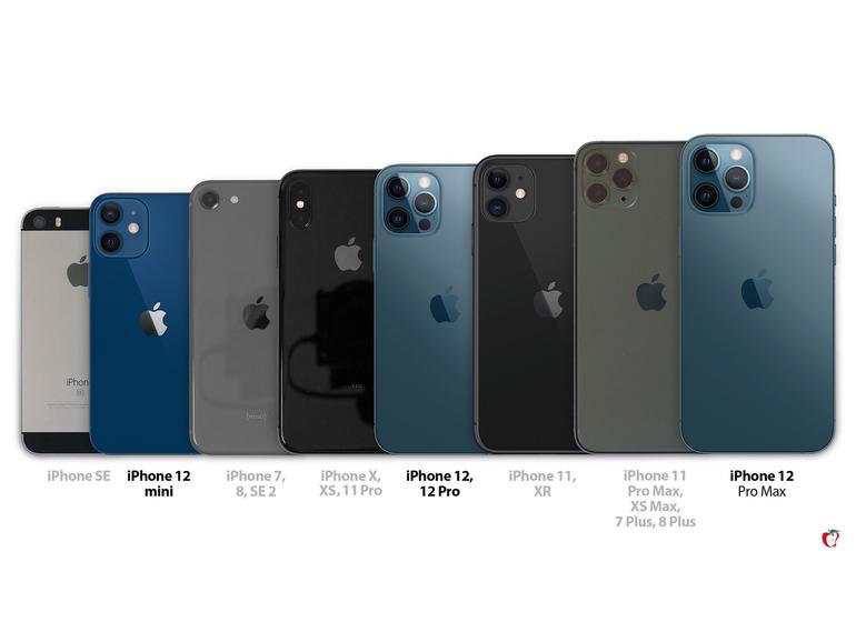 In 2020 bietet Apple das iPhone erstmals als Mini-Ausführung an. Im Vergleich zu den ersten Generation bis zum iPhone 5S ist es zwar immer noch groß, aber für heutige Verhältnisse dann doch sehr klein. Die Kollegen von MacRumors haben sich daher die Mühe gemacht und sämtliche verfügbare Modelle in einen Vergleich gesetzt, um einmal die Größenunterschiede auf einen Blick sehen zu können. Diese fallen besonders zwischen dem iPhone 12 Pro Max und dem iPhone 12 mini gewaltig aus. Letzteres ist nur wenig größer als das erste iPhone SE, aber kleiner als dessen zweite Generation.