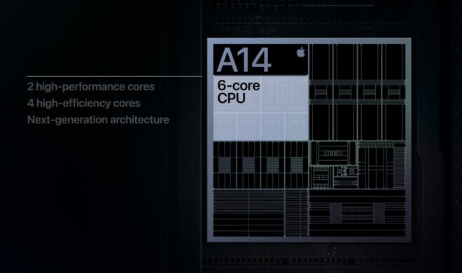 Auch 2020 erhält das iPhone wieder einen neuen Chip, der noch leistungsfähiger als sein Vorgänger ist. Durch das neue 5-nm-Fertigungsverfahren ist er deutlich effizienter, sodass er bei höherer Leistung weniger Energie benötigt. Trotz einer verbesserten Performance kann Apple so dieselbe Akkulaufzeit wie beim Vorgänger gewährleisten – und das mit einem kleineren Akku.