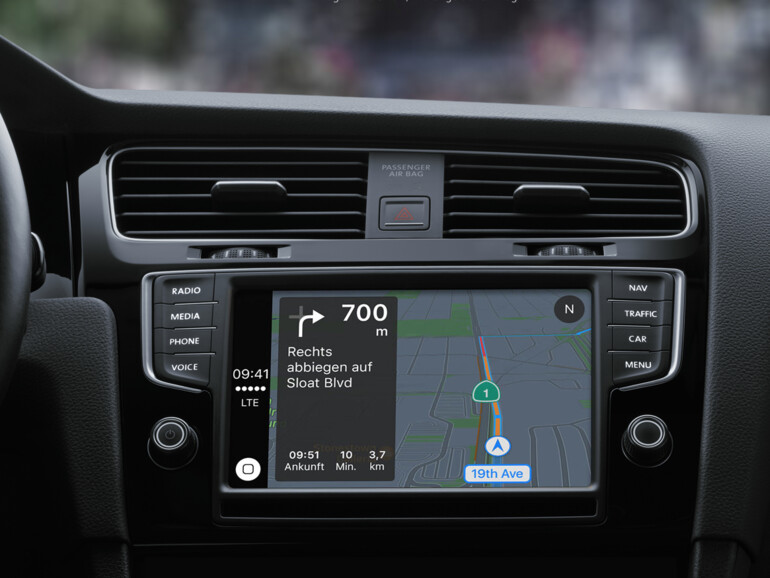 Zu den Stärken von Karten gehört die Zusammenarbeit mit anderen Apple-Geräten. So kann man etwa am Mac oder iPad geplante Routen einfach per Handoff auf das iPhone übertragen. Besitzer einer Apple Watch können per Siri ein Ziel eingeben und die Navigation starten. Praktischer ist aber, die Weginformationen während der Navigation auf der Apple Watch auszugeben. Dazu kann man sich über Vibrationen informieren lassen, ob man links oder rechts abbiegen muss. So bewegt man sich im Auto oder auf dem Fahrrad ohne Blickkontakt zum iPhone. Das funktioniert mit etwas Eingewöhnung sehr gut. Zudem ist Karten weiterhin die einzige Navigations-App, die im Auto mit CarPlay zusammenarbeitet.