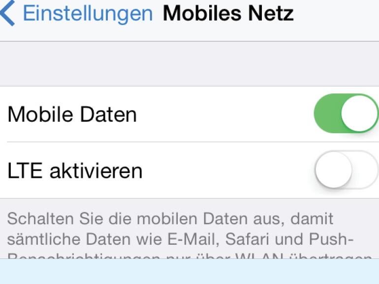 Unter dem Punkt „Mobiles Netz“ können Sie die mobile Datennutzung Ihres iPhones komplett deaktivieren. Damit verbindet sich das iPhone ausschließlich über WLAN-Netzwerke mit dem Internet.