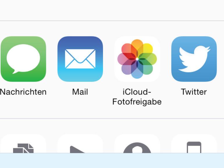 Nachdem Sie das Bild ausgewählt haben, können Sie es über die „iCloud-Fotofreigabe“ freigeben. Dazu tippen Sie auf den entsprechenden Knopf in der Teilen-Auswahl.