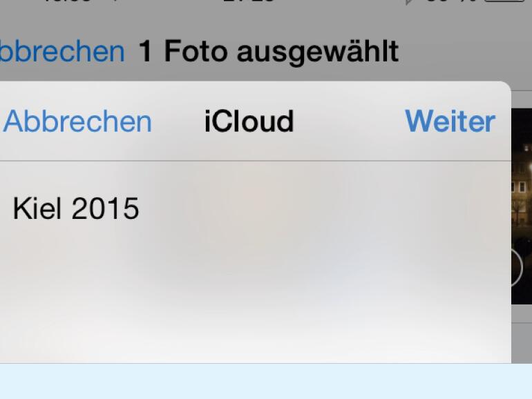 Anschließend können Sie das Bild mit einem Titel versehen. Über den „Weiter“-Knopf laden Sie Ihre Kontakte zum iCloud-Photo-Album ein und schließen die Freigabe ab.