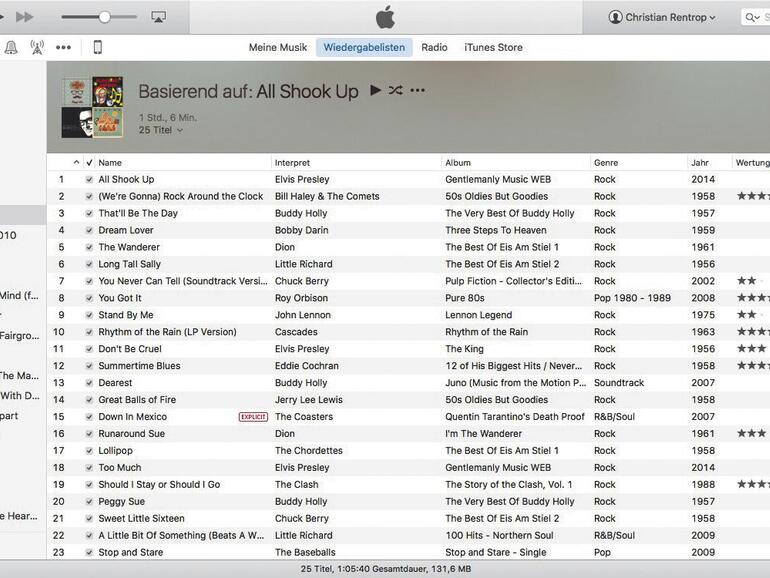 Bei ausreichend großen Musiksammlungen gibt es nicht selten „tote“ Tracks: Songs, die du zwar hast, aber niemals hörst. Wenn du diese Musik entdecken möchtest, solltest du eine Genius-Playliste anlegen, mit deren Hilfe du Songs zu hören bekommst, die du nicht auf dem Radar hattest: Klicke dafür einfach einen Song, der musikalisch zu dem passt, was du hören möchtest, mit der rechten Maustaste an und wähle „Genius-Liste erstellen“. iTunes erstellt jetzt anhand des Songs eine Liste mit 25 Liedern, die ähnlich sind. Deren Länge kannst du auf 50, 75 oder sogar 100 Titel ausdehnen. Natürlich kann die Playliste später auch auf iPhone und Co. übertragen werden. Ein Klick auf „Aktualisieren“ tauscht die Songs aus.