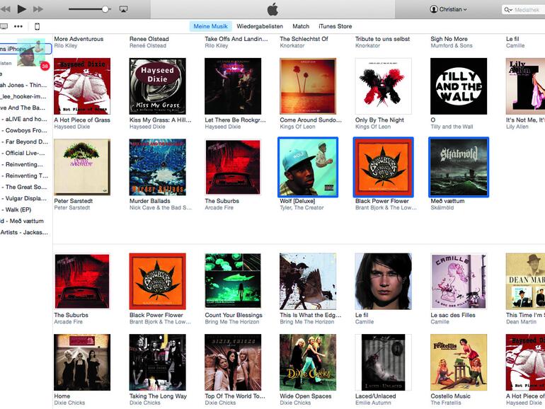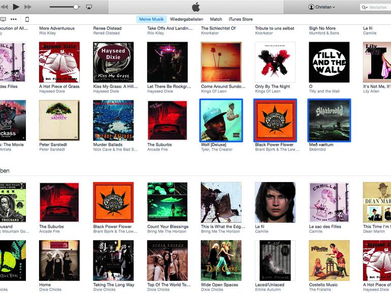 Nun gehen Sie in Ihre Mediathek zur Musiksammlung. Wählen Sie entweder ein Album aus oder mehrere, indem Sie die cmd-Taste gedrückt halten und die Alben anklicken.