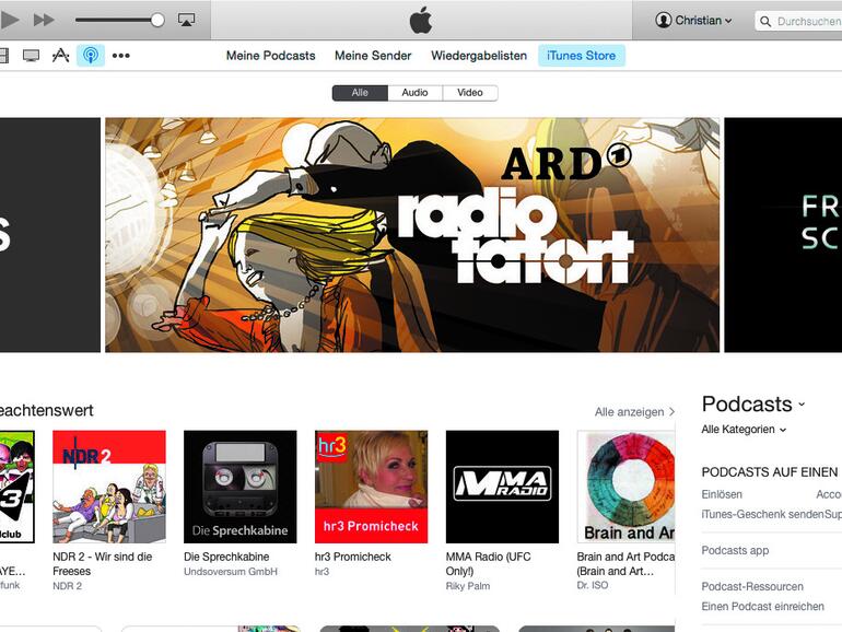 Großer Popularität erfreuen sich seit Jahren auch die sogenannten Podcasts. Hierbei handelt es sich um Hörfunk zum zeitsouveränen Nachhören. Die Themen sind dabei unfassbar vielfältig. So gibt es Podcast-Sendungen zu Themen wie Geschichte, Kultur, Film, Musik oder Videospiele, aber auch Nachrichten wie den Seewetterbericht. Ein Abonnement ist generell kostenlos und kann spielend einfach über den iTunes Store eingerichtet werden. Gehen Sie dazu einfach auf den Punkt Podcasts in iTunes und wählen Sie dann iTunes Store aus.