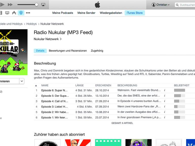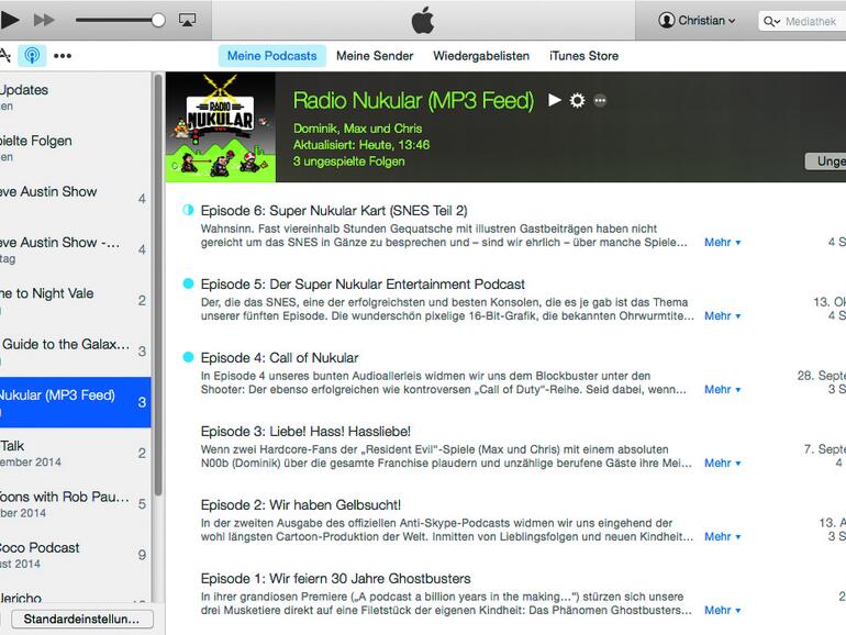 In Ihrer Podcast Sammlung in iTunes finden Sie den eben abonnierten Podcast nun auch wieder. Dort können Sie auch alte Folgen nachladen und verwalten.