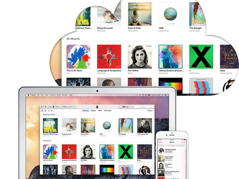 Mit iTunes Match übertragen Sie Ihre Musik auf Apples iCloud-Server. Damit können Sie Ihre Alben und Songs fortan aus der Cloud auf Ihre einzelnen Geräte streamen beziehungsweise herunterladen. Mit Macs und Windows-PCs benötigen Sie dazu das iTunes-Programm. Damit streamen Sie Ihre Musik oder laden sie auf Ihre Festplatte herunter. Das Streamen ist besonders praktisch für MacBooks mit geringem Festplattenspeicher. Anders verhält es sich bei iOS-Geräten wie iPhone und iPads. Dort greifen Sie mit der vorinstallierten Musik-App auf Ihre Mediathek zu. Das Streamen von Musik ist auf diesen Geräten allerdings nicht möglich.