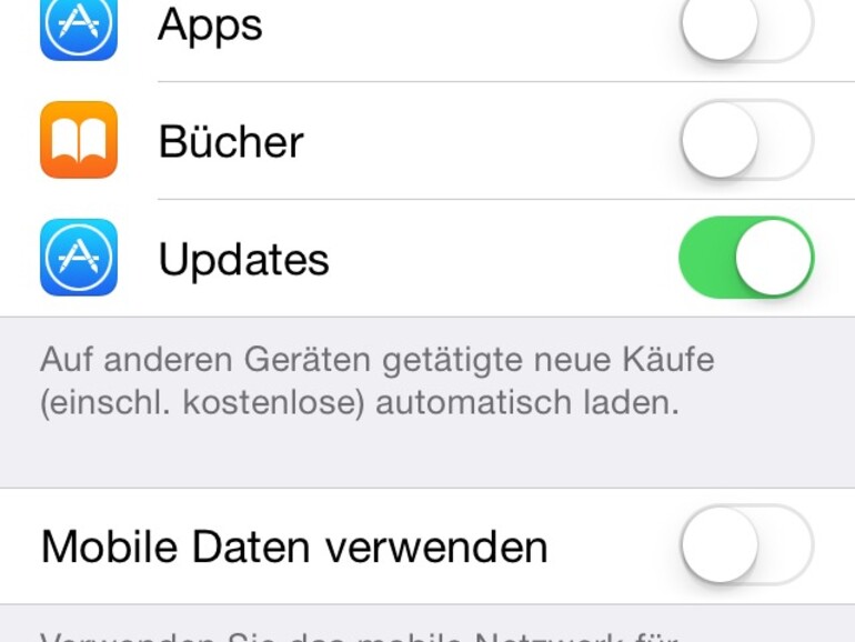 Das Herunterladen von Ihrer Musik in der iCloud kann über die mobile Datennutzung schell zu Problemen führen. Viele Datentarife drosseln Ihren Internet-Zugang oder es können zusätzliche Kosten entstehen. Um dies zu vermeiden, deaktivieren Sie die mobile Nutzung von iTunes Match. In den Einstellungen finden Sie unter iTunes & App Store die Option namens Mobile Daten verwenden. Deaktivieren Sie diese Option und die Musik-App lädt nur in WLAN-Netzwerken neue Musik herunter.