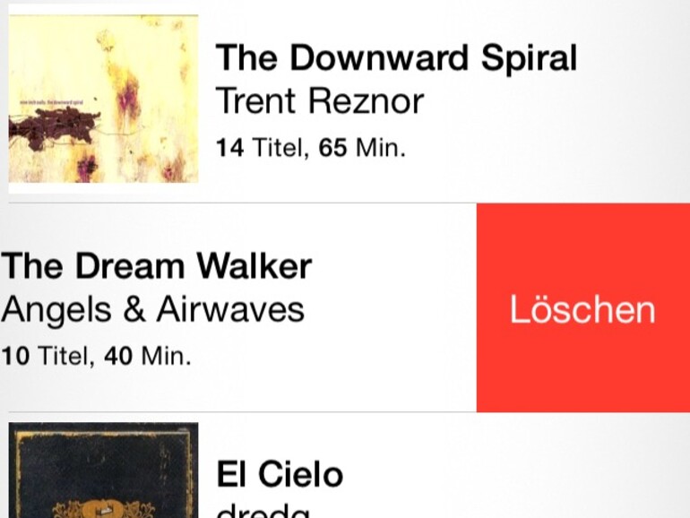 Sollte Ihnen der Speicherplatz auf Ihrem iPhone ausgehen, können Sie auch heruntergeladene Musik von Ihrem Gerät löschen. Dazu navigieren Sie in die Musik-App. Mit einer Wischgeste nach links über einen Song oder ein Album erscheint der Löschen-Knopf. Dabei wird die Musik aber nur von Ihrem Gerät gelöscht. Sie können diese jederzeit erneut aus der Cloud herunterladen.