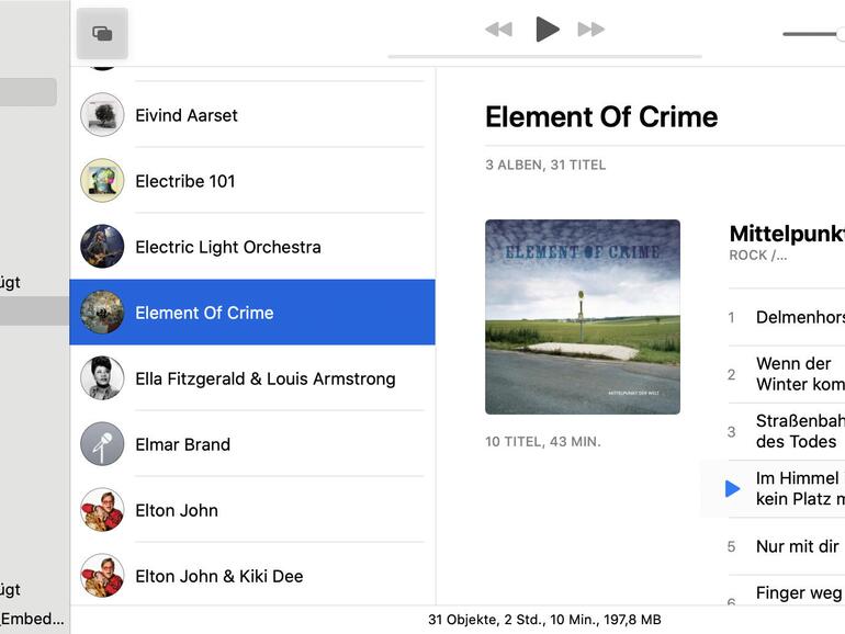 Wer zuvor iTunes zum Hören von Musik genutzt hat, wird sich auch in der Musik-App schnell zurechtfinden. Wie auch das Gegenstück auf iPhone und iPad ist das Programm vor allem für Abonnenten des Apple-Music-Angebots gestaltet und bietet mit dem Streamingdienst alle Möglichkeiten, das üppige Angebot auszunutzen. Doch auch dann, wenn man kein Kunde von Apples Musik-Flatrate ist, verwaltet das Programm alles an Musik, was in Dateiform vorliegt. Selbst das Importieren von Audio-CDs und das Brennen derselben von Playlisten ist noch möglich. Dazu braucht man allerdings einen CD- oder DVD-Brenner, der intern, als USB-Gerät oder an einem anderen Mac im Netzwerk vorhanden sein muss.