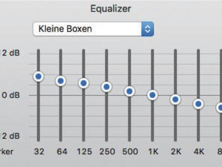 Wer ein Macbook besitzt oder Musik vom Mac auf kleinen Bluetooth-Speakern oder Monitor-Boxen wiedergibt, wird merken, dass die Höhen klirren und die Bässe irgendwie matschig klingen. Das liegt in der Regel an der Qualität der Lautsprecher, wer jedoch keine neuen Lautsprecher kaufen möchte, kann sich recht einfach mit dem iTunes-Equalizer, den Sie schnell mit der Tastenkombination (alt)+(cmd)+(e) aufrufen, behelfen: Setzen Sie hier den Haken bei „Ein“ und wählen Sie aus dem Dropdown-Menü „Kleine Boxen“. Die angepassten Equalizer-Einstellungen ziehen die Bässe hoch und die Höhen runter – so klingen kleine Boxen direkt deutlich besser. Übrigens haben auch die Equalizer von iPhone, iPad und iPod touch eine entsprechende Option.
