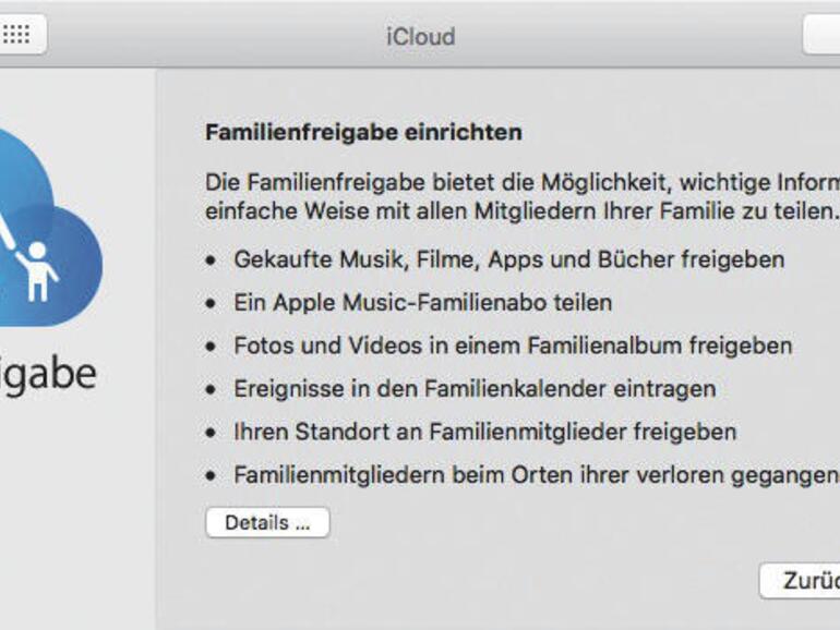 Beliebte Apps und Songs müssen Sie innerhalb der Familie nicht mehrfach für mehrere Apple-IDs kaufen: Es reicht, wenn Sie das einmal tun und stattdessen die Familienfreigabe einrichten, um andere Apple-IDs an Ihre zu koppeln. Die entsprechende Einstellung finden Sie in den Mac-Systemeinstellungen unter „iCloud“: Hier klicken Sie zunächst auf den Punkt „Familien einrichten“ und navigieren sich anschließend durch die Menüs. Anschließend können Sie bis zu fünf Apple-IDs hinzufügen. Wichtig: Als Familienorganisator müssen Sie auch für die Käufe der anderen bezahlen, diese gehen aber auf Ihr iTunes-Konto. Entsprechend wichtig ist es, den AppStore und In-App-Käufe auf den Geräten der Kinder zu deaktivieren.