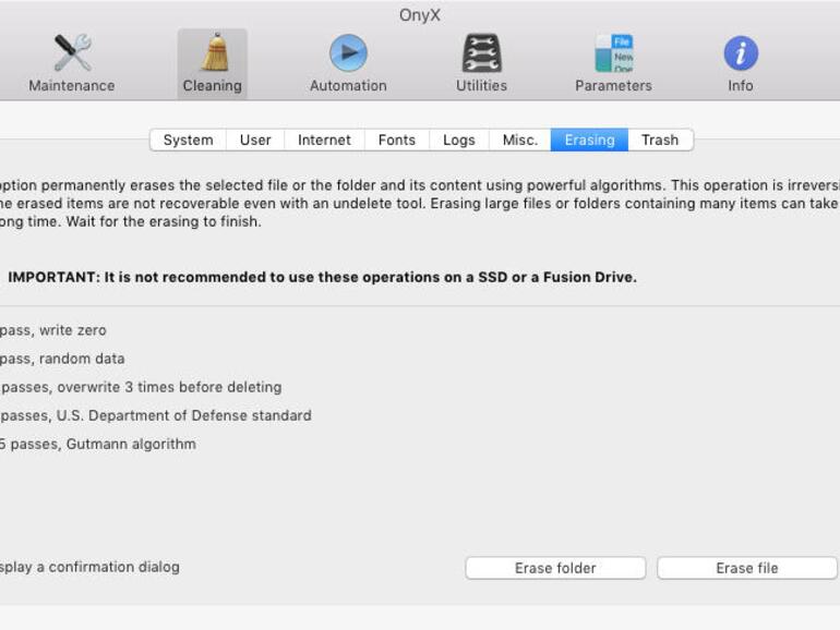 Angesichts zunehmender Verbreitung von SSDs hat Apple in El Capitan das sichere Entleeren des Papierkorbs entfernt, bei dem die Dateien mit Fülldaten überschrieben werden. Das Löschen des freien Speicherbereichs ist im Festplattendienstprogramm ebenfalls verschwunden. Wer kein FileVault nutzt und nicht gleich das ganze Volume löschen will (Kasten rechts), kann sich bei Festplatten anders behelfen. Das Systemtool bringt Funktionen zum sicheren Löschen einer Datei oder eines Ordners mit. Die Funktion sollte aber nicht auf SSDs (Fusion Drives eingeschlossen) verwendet werden. Für den freien Speicher kann man sich auch einfach damit helfen, dass man ein paar große Dateien, Images oder Videos mehrfach dupliziert. Das nervt etwas, funktioniert aber sogar mit SSDs relativ gut (man kommt nur nicht an die Reserveblöcke ran).