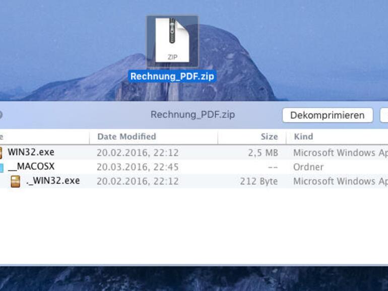 Dann blendet Mail die hinterlegte URL ein, die man oft auf den ersten Blick als falsch erkennt. In eine verdächtige Zip-Datei lässt sich mit dem kostenlosen Tool EtreZip reinschauen, das ein Plug-in für die Finder-Vorschau installiert. So reicht ein Druck auf die Leertaste, um den Inhalt zu sehen. Meist entpuppt er sich als exe-Datei, also PC-App. http://etresoft.com