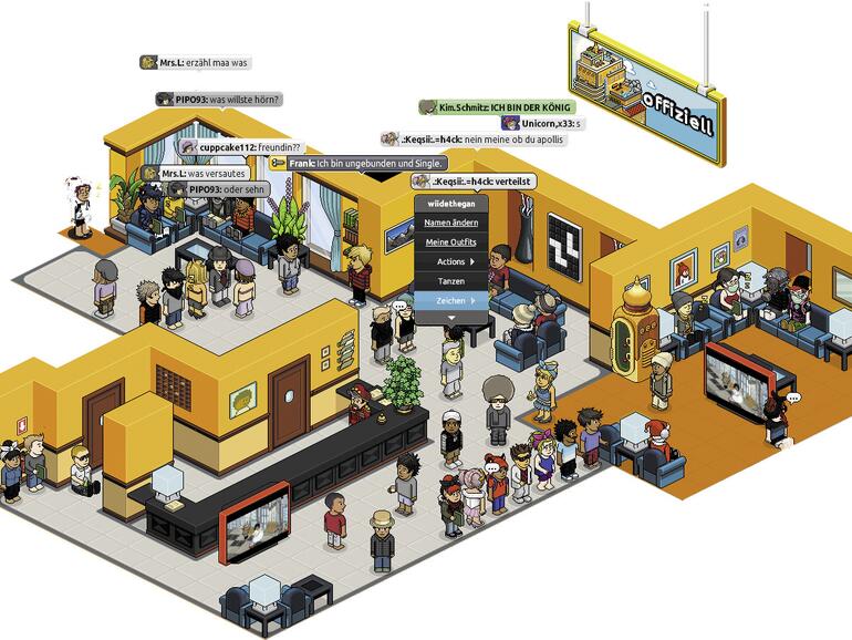 Das Habbo Hotel erinnert eher an ein Video-Spiel als ein klassisches soziales Netzwerk. Anders als bei Facebook, steht eine virtuelle Figur im Vordergrund, auch Habbo genannt. Diese Figur können Sie mit Kleidung und anderen Gegenständen nach Ihrem persönlichen Geschmack verkleiden. Mit dem Habbo erkunden Sie die unterschiedlichen virtuellen Räume. Diese sind thematisch unterteilt. Es gibt zum Beispiel einen Lobby-Raum für Einsteiger. Nutzer können aber auch eigene Räume und Gruppen erstellen. Zur Vernetzung chatten Sie mit anderen Nutzern, stellen Freundschaftsanfragen oder organisieren sich in Gruppen.