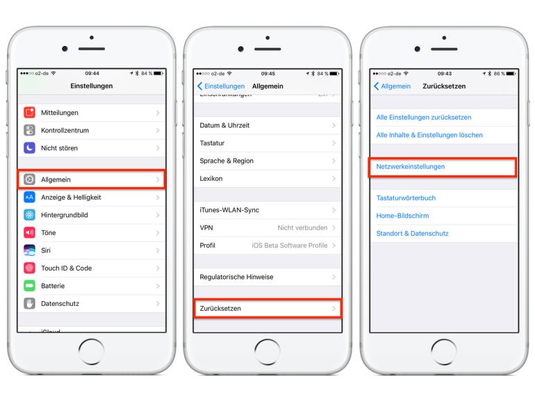 Gehen Sie dazu in die Einstellungs-App und wählen dort „Allgemein“ aus. Scrollen Sie nun nach ganz unten. Hier tippen Sie auf „Zurücksetzen“ und anschließend auf „Netzwerkeinstellungen“. Bestätigen Sie den Vorgang mit Ihrem Entsperr-Code. Das Zurücksetzen kann einen Moment dauern.