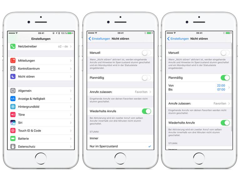 Um dennoch Anrufe von bestimmten Nutzergruppen zu zulassen, können Sie unter „Anrufe zulassen" etwa alle Favoriten freigeben, sodass diese Sie auch während der Ruhezeiten erreichen können. Gleich darunter findet sich die Funktion „Wiederholte Anrufe". Ist das Feature aktiviert, dann können Sie auch Anrufer außerhalb Ihrer Freigabe erreichen, wenn diese Sie innerhalb von drei Minuten mehrfach versuchen zu erreichen.