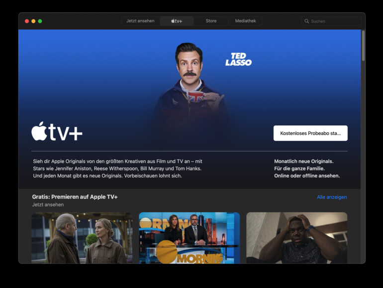 Der „kleinste“ Anbieter ist Apples eigener Streaming-Dienst Apple TV+. Wie Amazon bietet Apple in der eigenen App sowohl Abo-Inhalte, als auch Videos zum Kauf oder Ausleihen an. Im Abo gibt es ausschließlich „Originals“ und die gibt es dann auch nur bei Apple zu sehen.