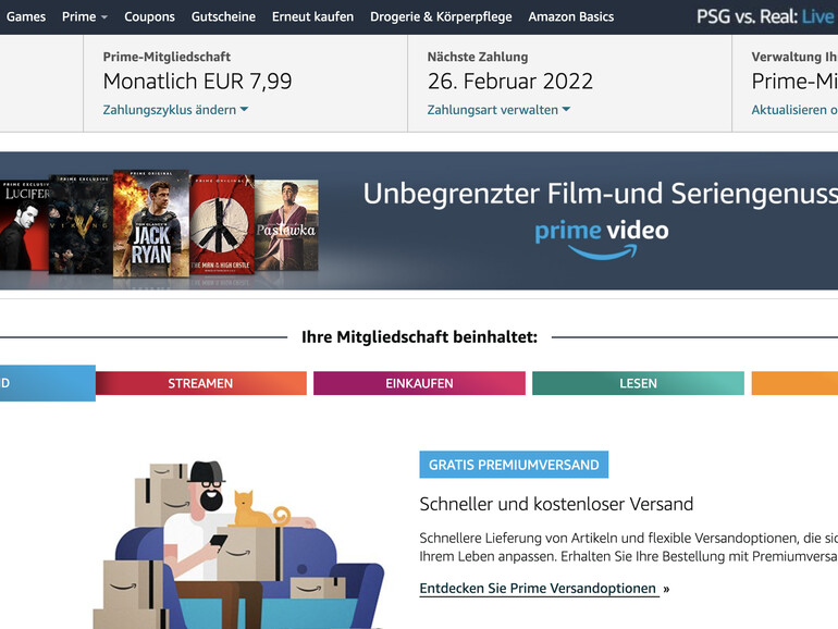 Während der Bekanntgabe der Quartalszahlen hatte Amazon angekündigt, den Preis für die jährliche und monatliche Mitgliedschaft zu erhöhen. US-Kunden zahlen damit 14,99 statt 12,99 US-Dollar monatlich. In Deutschland bleibt es noch bei 7,99 Euro/Monat.