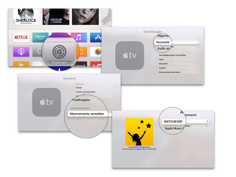 So verwaltest du Abos über Apple TV 4