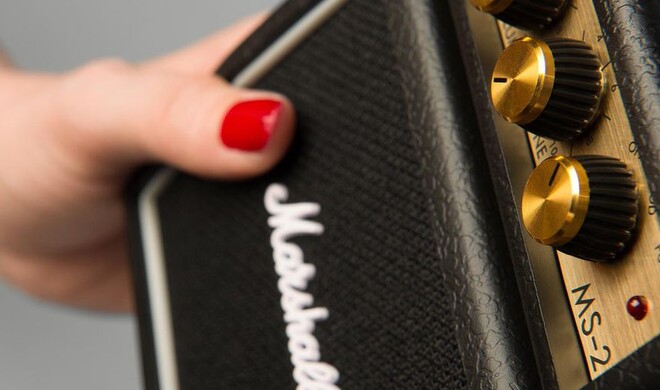 Gitarristen aufgepasst: Der MS2 will trotz seiner Maße von 14 x 11 x 6 cm vollen Marshall-Sound bieten. Er kann auf Clean- und Overdrive-Mode geschaltet werden und hat einen Klangregler, ein Kopfhöreranschluss ist auch vorhanden.