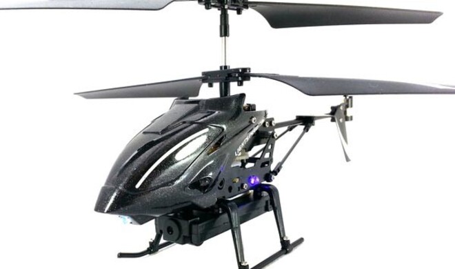 Der iHelicopter mit Kamera kann mit dem mitgelieferten Infrarotsender per iPhone oder iPad gesteuert werden. Im Lieferumfang ist neben Ersatzteilen auch eine SD-Karte enthalten, auf der du deine im Flug gemachten Fotos oder Videos speichern kannst. Die Ladezeit für einen siebenminütigen Flug beträgt circa 45 Minuten. Der iHeli macht Spaß, ist aber natürlich keine Alternative zu höherpreisigen Drohen: Das Flugverhalten ist eher chaotisch.
