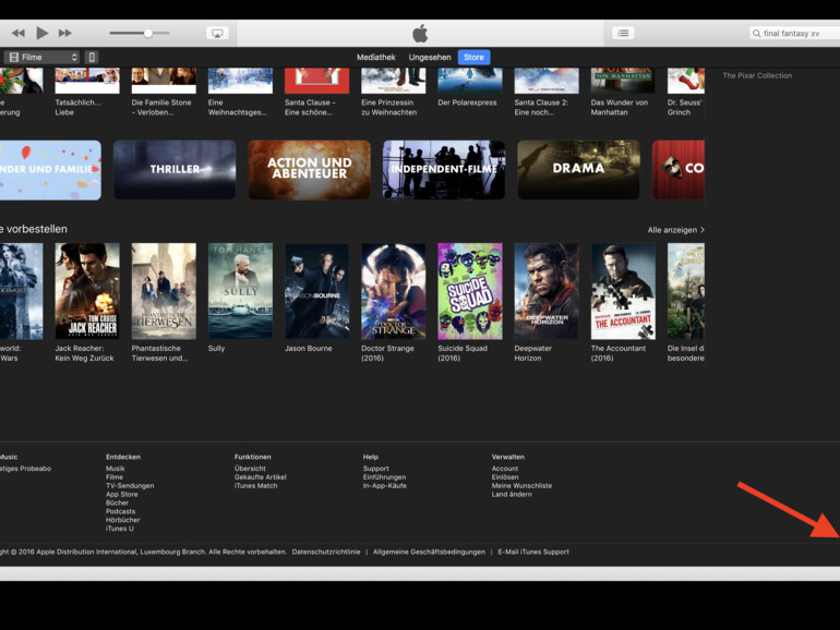 Öffnen Sie iTunes auf Ihrem Mac oder PC. Rufen Sie die Store-Ansicht auf und scrollen Sie nach ganz unten. Unten rechts sehen die deutsche Länderflagge. Klicken Sie darauf.